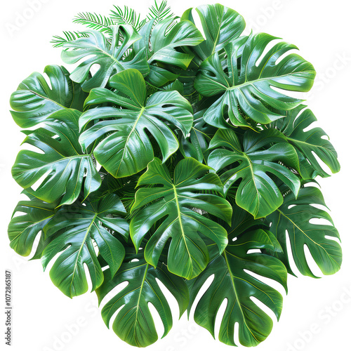 Lush Monstera Foliage, vibrant green leaves, tropical plant bliss Isolated on white background or PNG