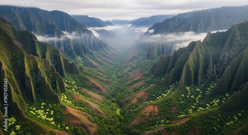 fog, kauai, cloud, vale, nature, hawaii, scenery, outdoors, landscape, mountain, wilderness, cloudy sky, aerial view, scenic view, dramatic sky, natural beauty, mountain scenery, aerial photography
