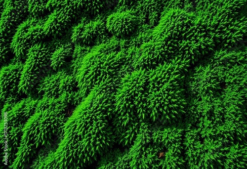 Lush, vibrant green moss texture with subtle light and shadow variations, backdrop, forest