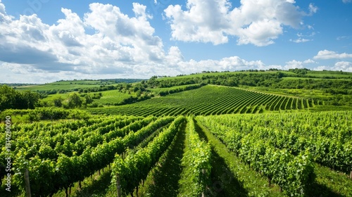 vinery, grape, hill, landscape, nature, green, agriculture, row, plant, summer, scenic, rural, outdoors, farmland, tree, foliage, growth, sunny, blue, sky, cloud, view, farming, fresh, healthy, vine-growing, wine, vinification, crop, harvest, countryside, beauty, greenfield, horizon, elevation, daylight, production, environment, growing, cultivation, vinery, tour tourism, travel, destination