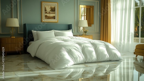 bedchamber, interior, design, decor, luxury, comfortable, modern, classic, elegant, roomy, cosy, bedding, white, comforter, duvet, pillow, bed, furniture, nightstand, lamp, art, mirror, window, sunlight, marble, floor, gentle, calm, relaxation, sleep, dream, home, house, apartment, stylish, chic, sofa, chair, tropical, view, peaceful, quiet, minimalist, sophisticated, warm, soft, quality