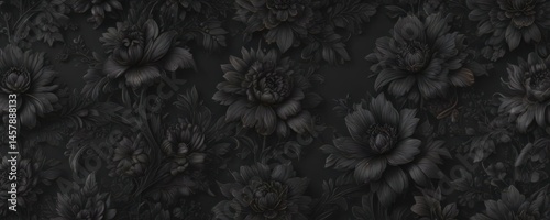 Luxurious black charcoal floral wallpaper, rich texture & intricate design , dark wallpaper, floral pattern