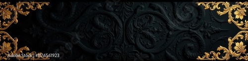 Luxurious black velvet with gold brocade accents, golden, studio, wrinkles