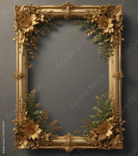 Luxurious botanical frame, gold foil detailing, sophisticated design , invitation, refined, design