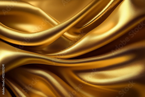 Luxurious Golden Silk Fabric with Smooth Wrinkles and Elegant Folds – Perfect for Glamorous Backgrounds