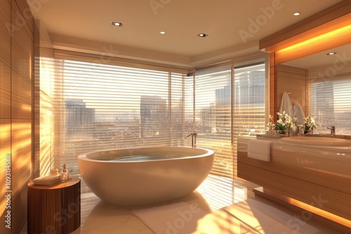 Luxurious Hotel Spa Bathroom with Panoramic View and Stylish Furniture