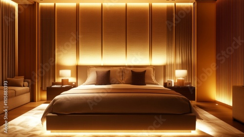 Luxurious Modern Bedroom Design with Warm Lighting and Elegant Decor