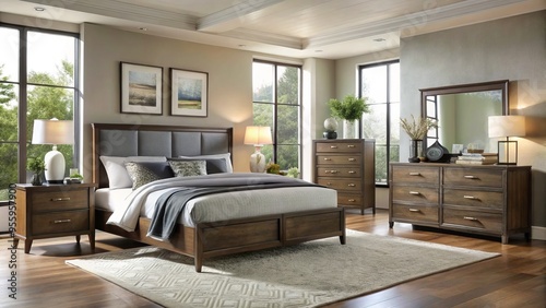 Luxurious Modern bedroom set including bed, dresser, and nightstands for sale in Chesterfield, perfect for stylish and