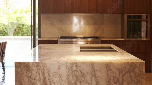 Luxurious Modern Kitchen Island with Marble Countertop and Integrated Sink