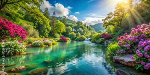 Luxurious Natural Skincare: Serene Landscape with Botanicals