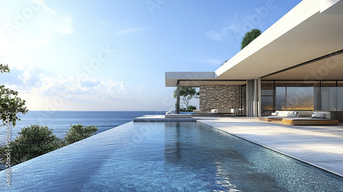 oceanfront, property, infinity pool, modern, architecture, luxury, design, relaxation, water, horizon, contemporary, villa, landscape, sunlight, tranquil, vacation, resort, nature, view, elegant, swimming, terrace, glasses, stone, tree, blue, sky, summer