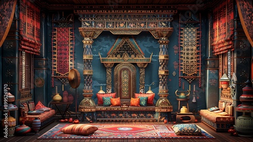 traditional, interior, luxurious, ornate, decor, vibrant, textile, intricate, pattern, craftsmanship, cultural, setting, detailed, rich, pillow, rug, heritage, vintage, elegant, exotic, antique, handcraft, opulent, decoration, furniture, artistry