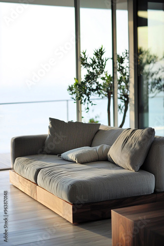 luxury apartment suite lounge with sofa set and beautiful view generated by AI