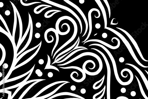 luxury BLACK AND WHITE traditional Indonesian Dayak batik design with aesthetic gradient background