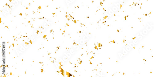 Luxury gold sparkle confetti glitter and zigzag ribbon falling down on transparent background. Vector illustration
