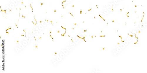 Luxury gold sparkle confetti glitter and zigzag ribbon falling down on transparent background. Vector illustration.