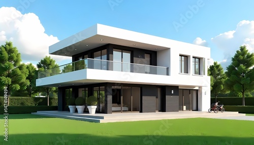 Luxury home architecture on a sunny, blue sky tropical beach estate