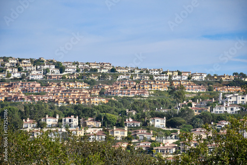 Luxury homes on the hillside near New Port Beach in Orange County, Southern California.