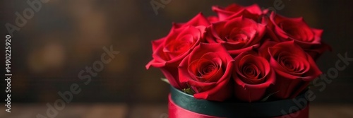 Luxury red roses, elegantly arranged in a gift box , romance, commercial photography