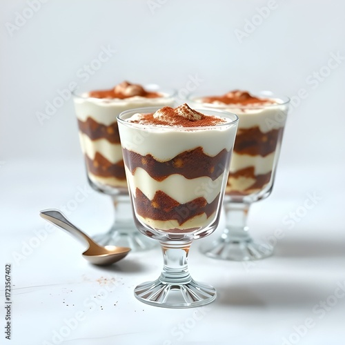 “Luxury Tiramisu Glass” - Individual tiramisu layered in crystal glasses with mascarpone cream and cocoa dust.
