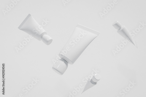 luxury white plastic tube with screw cap, plastic cosmetic Tube mockup, Squeeze tube packaging, liquid makeup container packing mockup, trendy hand cream container, cylidrical screw cap template