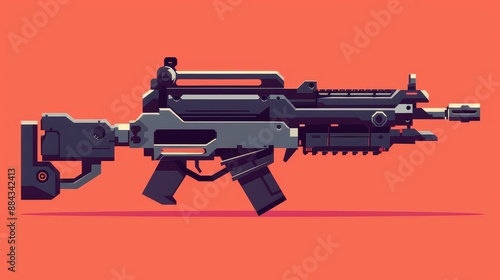Machine Gun flat design, side view, military theme, animation, Split-complementary color scheme
