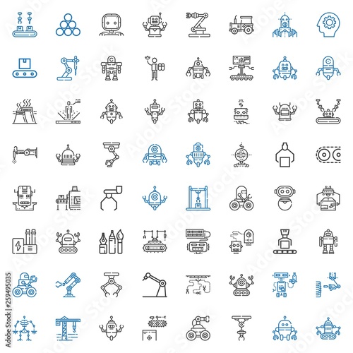 machinery, icon, set, vector, robot, industrial, conveyer, crane, tool, industry, men at work, gear, tractor, symbol, design, technology, isolated, machine, line, manufacturing, illustration, signs, production, hand, outline, mechanical, concept, science, arm, chips, robotic, tech, android, artificial, intelligence, future, cyborg, futuristic, control