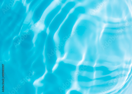 Macro blue water surface,drops on water with circles on a blue background close up