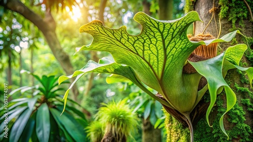 Macro nature background of Aristolochia indica Tree or Elkhorn Fern Staghorn Fern with clipping path