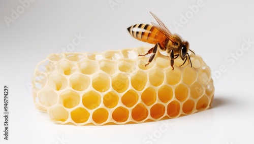Macro photo of working bees on honeycombs. Beekeeping and honey production image.