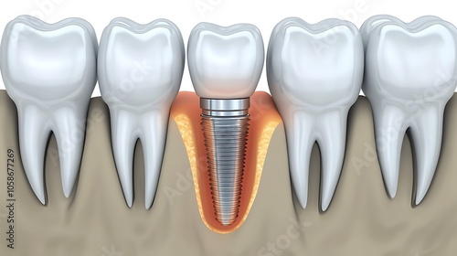 Macro photograph displaying the precise placement of a dental implant within the jawbone, capturing the specialized tools and techniques used in the implantation process.