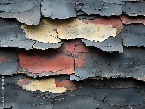 Macro Photograph of a Painted Wall with Chipped Layers in Weathered Condition