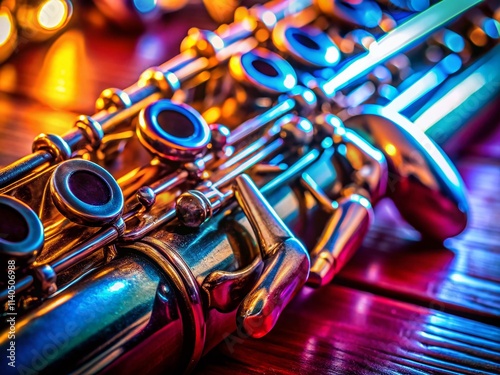 Macro Photography Clarinet Closeup: Musical Instrument Detail, Woodwind Reed, Keywork, Clarinet Keys, Musical Instrument Texture