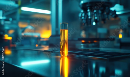 macro, shot, glowing, test, tube, placed, sleek, laboratory, counter, soft, light, reflecting, off, glasses, clean, tone, invoking, innovation, research, laboratory, liquid, science, medicine, chemistry, sample, biology, health, experiment, background, biotechnology, closeup, analysis, equipment, medicals, hospital, chemical, technology, scientific, pharmacy