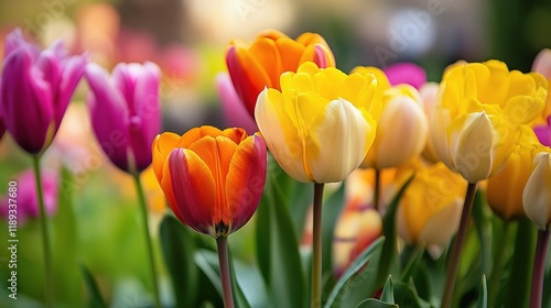 Macro View of Blooming Spring Flowers in Vibrant Colors