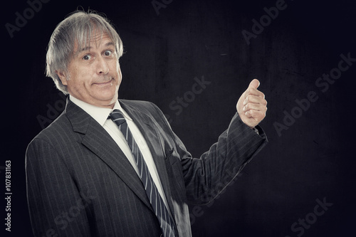 blackboard, prof, mad, businessman, man, point, adult, person, portrait, caucasian, human, intelligence, crazy, background, thinking, bizarre, black, business, smart, copy, space, elegant, thinks