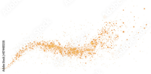 Magic shining gold dust. Christmas background. Powder dust light PNG. Fine, shiny dust bokeh particles fall off slightly. Fantastic shimmer effect. PNG.