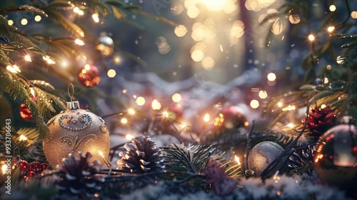 Magical Christmas background, sparkling fairy lights, whimsical ornaments, enchanted forest setting, [Christmas background], [magical holiday]