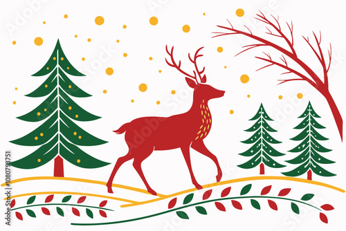 christmas, background, cervid, holiday, festive, winter, scenery, snow, cosy, seasonal, winter landscape, snowy, magical, peaceful, nature, forest, christmas tree, christmas design, holiday spirit, christmas night, pine tree, wintery, snowfall, serene, timberland