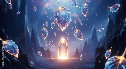 fantasy, magic, crystal, gem, stone, glowing, light, aethereal, leaf, leaf, nature, mystical, dark, landscape, scene, environment, supernatural, enchantment, wonder, dream, abstract, surreal, digital, art, concept, design, portal, gate, energy, power, element, sparkle, shimmer