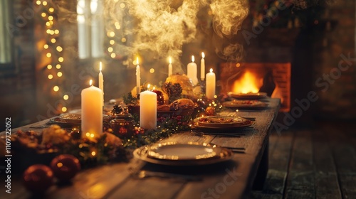 holiday, feast, rustic, wooden, table, glowing, candle, magical, decoration, wisp, light, celebration, festive, dinner, luxurious, widener, enchanting, atmosphere, special, occasion, dining, life events, elegant, setting, cosy, ambience, season, warmth, inviting, abundance, decorative, element, spirit, gathering, loved, 1, culinary, delight, exquisite, presentation, christmas, traditional, meal, warm, favor, beautiful, setup