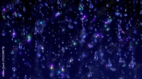 Magical Rain Glowing Water Drops Dark Blue Background Abstract Texture