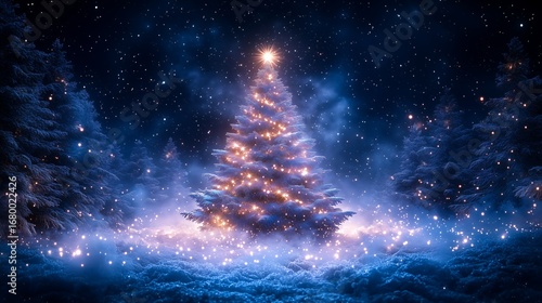 Magical starry Christmas tree blue purple gradient glow, dreamy galaxy background mobile wallpaper design, sparkling starlight effect holiday concept