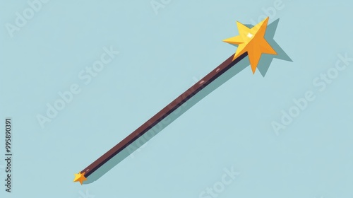 Magical wand with a star flat icon in a cartoon style Features a golden star atop the wand representing wizardry and enchantment Flat design of mystical elements