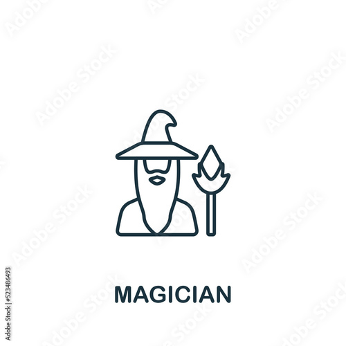 Magician icon. Monochrome simple line Game Element icon for templates, web design and infographics