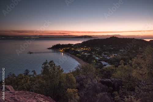 Magnetic island, Australia: view on the bay from the Hawkings point track during sunset, beautiful colourful pink sky