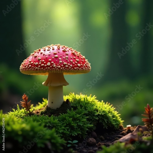 Magnificent porcini mushroom nestled in emerald moss, enchanting forest scene, peaceful, porcini, edulis