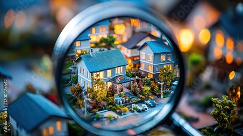 miniature, house, model, home, neighbourhood, village, property, estate, building, architecture, landscape, landscaping, magnifying glass, closeup, detail, scale, city landscape, town, community, lighting, night, evening, dark, small, tiny, sharpened, zoom, macro, photo, image, picture, view, perspective, artistic, creative, design, diorama, scene, residential