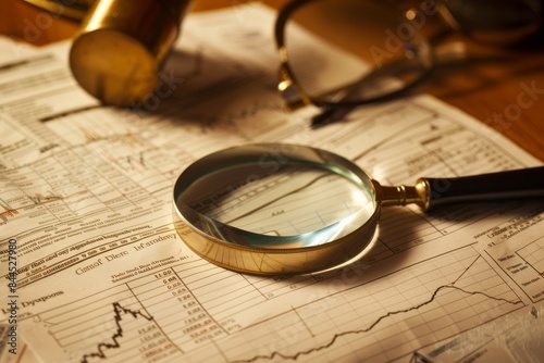 magnifying glass, chart, graph, analysis, research, investment, finance, economy, market, business, trend, number, statistic, detail, sharpened, goggles, object, background, closeup, image, investigation, scrutiny, stock exchange, economic