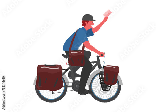 mail carrier, mail carrier, bicycle, courier, service, delivery, deliver, bag, post, mail, message, envelope, occupation, job, profession, professional, transport, bike, work, uniform, ride, vehicle, transportation, correspondence, riding, package, letter, send, hurry, address, fast, happy, cheerful, cycle, electronic mail, cycling, men at work, rider, man, male, person, people, figure, character, isolated, flat, illustration